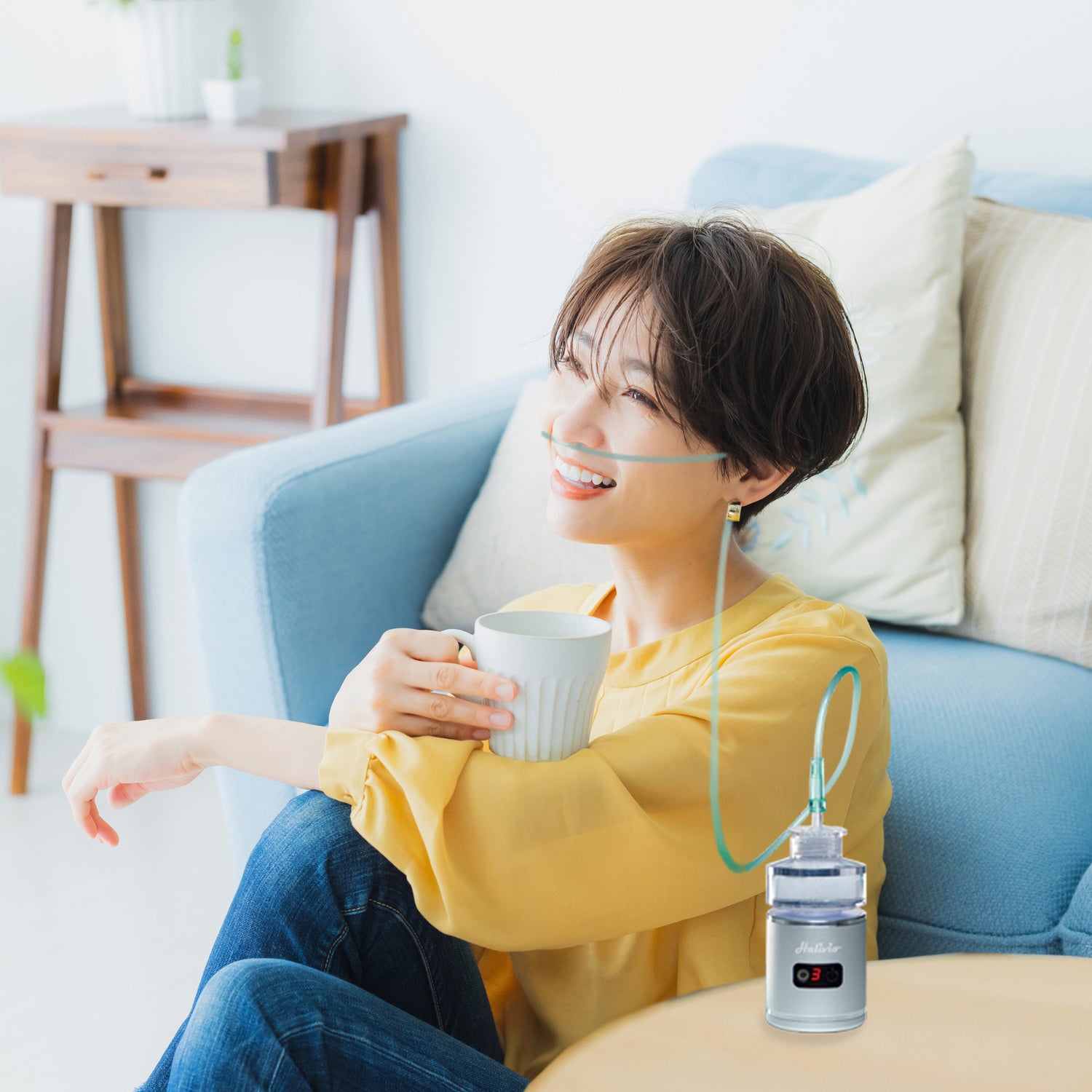 持ち運びも気軽にできるサイズだからいつでもどこでも水素ガス吸入が可能。