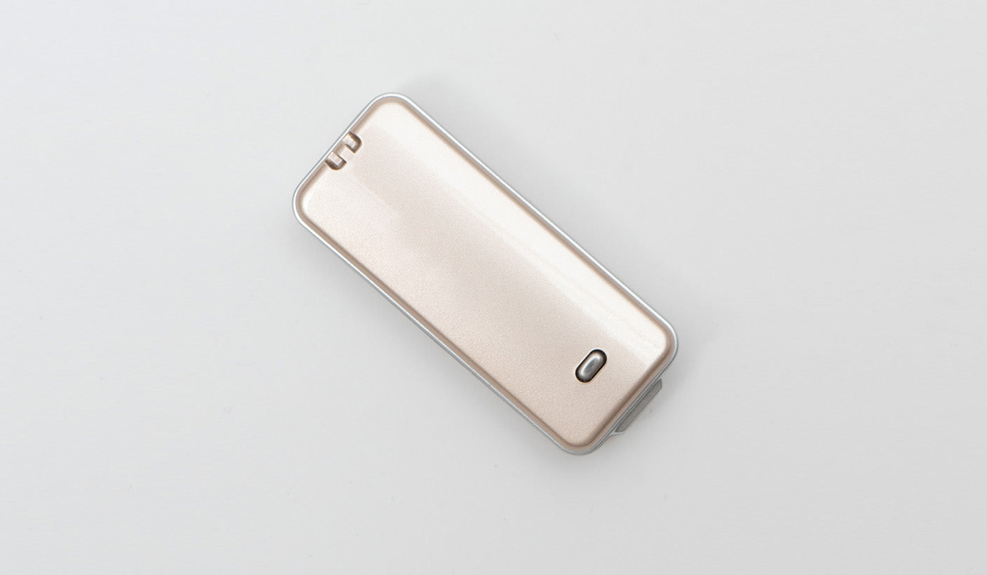 首からさげていることを忘れてしまう程の軽量化を実現しました。服の中に装着しても邪魔にならないサイズです。