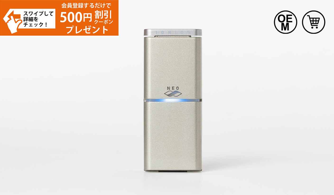 マイナスイオン発生器にはオゾン発生するタイプもありますが、イオニオンNEOにオゾンは発生しません。お子様からご年配の方までご安心してご使用いただけます。